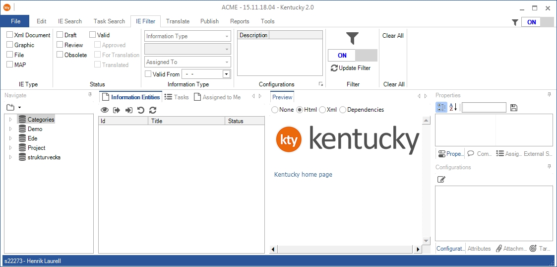 In the Ribbon menu, select IE Filter.