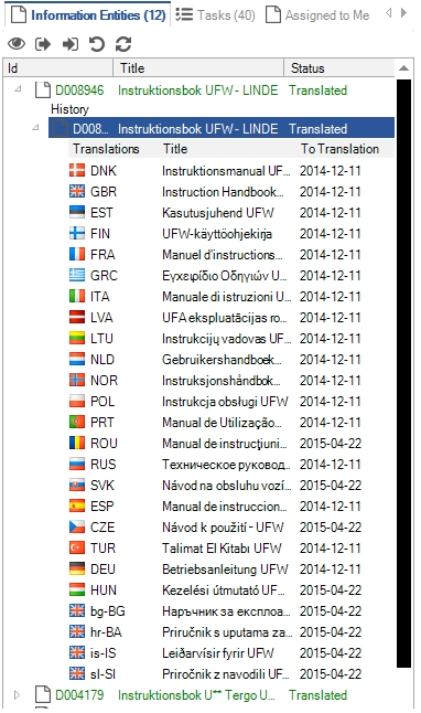 Expand the version in the same way and translations will be displayed right under.