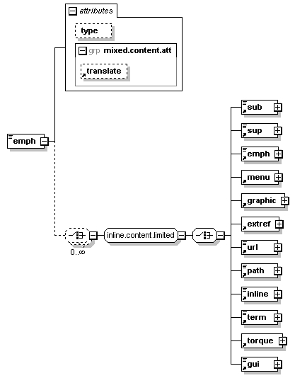 The intensity is specified with the attribute type. If the attribute is not specified, emph will be displayed as bold.