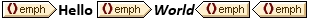 Emph is inherited: Hello World. The text "Hello" is tagged with emph[@type=bold] and the text "World" is placed within that element and tagged with emph[@type=italic]
